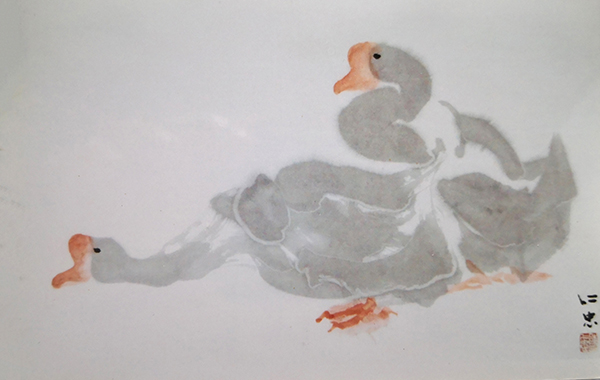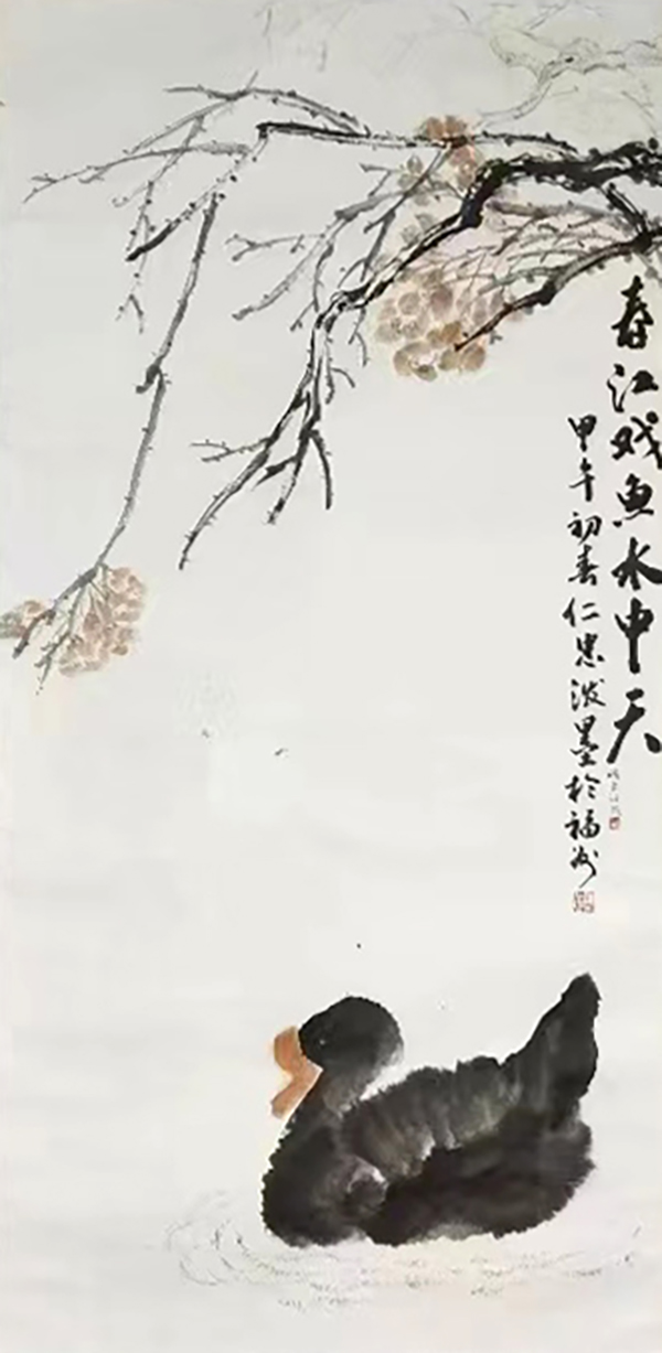 为宣扬改革开放时代主旋律,陈仁忠创作《春潮~领头鹅》,画面上的鹅气象不凡,喻示时代宏伟格局。此画为中国绘画史“一笔画”的首创之作。